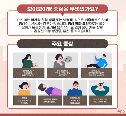 모야모야병은 10세 이하의 소아와 30~40대의 성인에게서 주로 발병합니다.