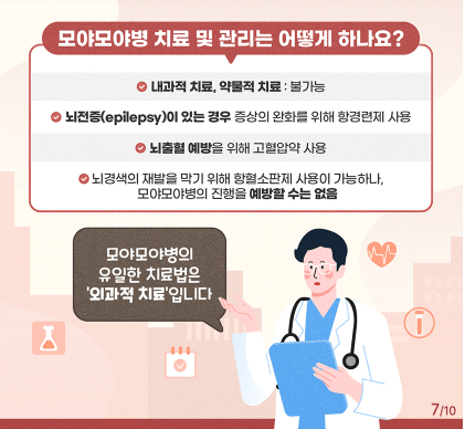 모야모야병은 완치가 어려운 난치병이지만, 조기 진단과 적절한 치료를 통해 증상을 완화하고 뇌 손상을 최소화하여 일상생활을 유지할 수 있습니다.