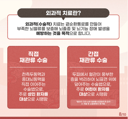 모야모야병 치료는 크게 약물 치료와 수술적 치료로 나뉩니다.