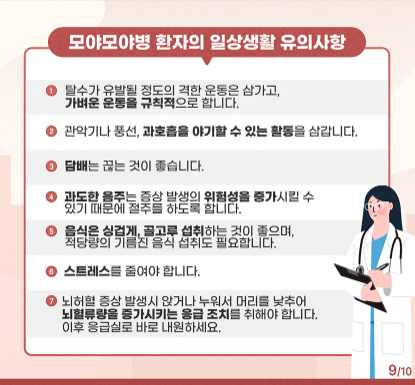 모야모야병은 조기에 발견하여 적절한 치료를 받으면 예후가 좋을 수 있습니다. 따라서 뇌졸중과 같은 뇌혈관 질환의 위험 요인을 줄이고, 정기적인 검진을 통해 뇌 건강을 관리하는 것이 중요합니다.